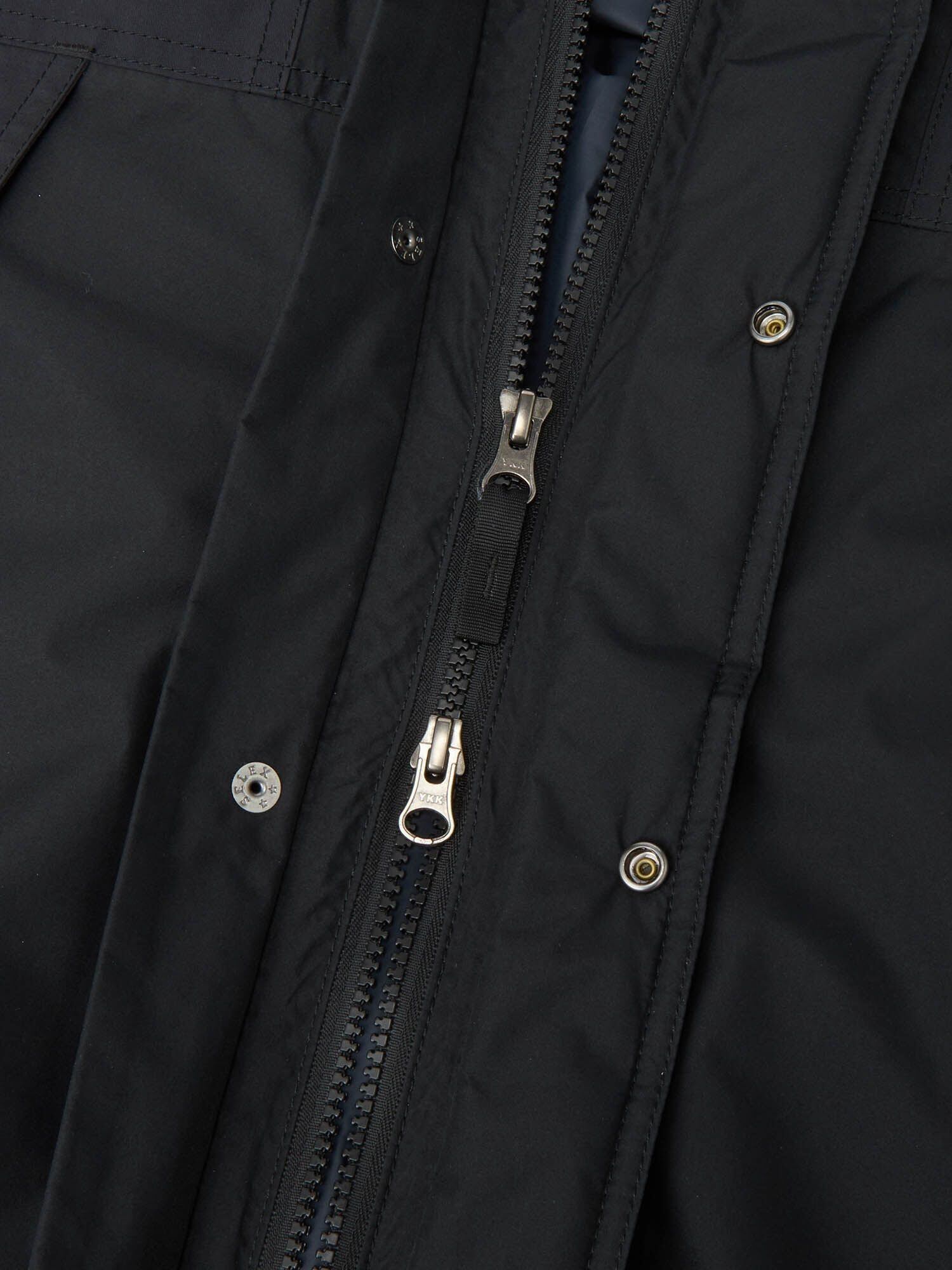 表地には50デニール、パックに干渉する肩切り替え部分は70デニールの、非フッ素メンブレンによるGORE-TEX PRODUCTSの2層構造を採用。軽量でかさ高がある、独自開発の中わた・HEATSEEKERで保温性を高めています。裏地はしなやかですべりのよいナイロンタフタ。フロントはダブルフラップ仕様で雨や雪の浸入を軽減します。裾のアジャスターでシルエットの調節が可能です。