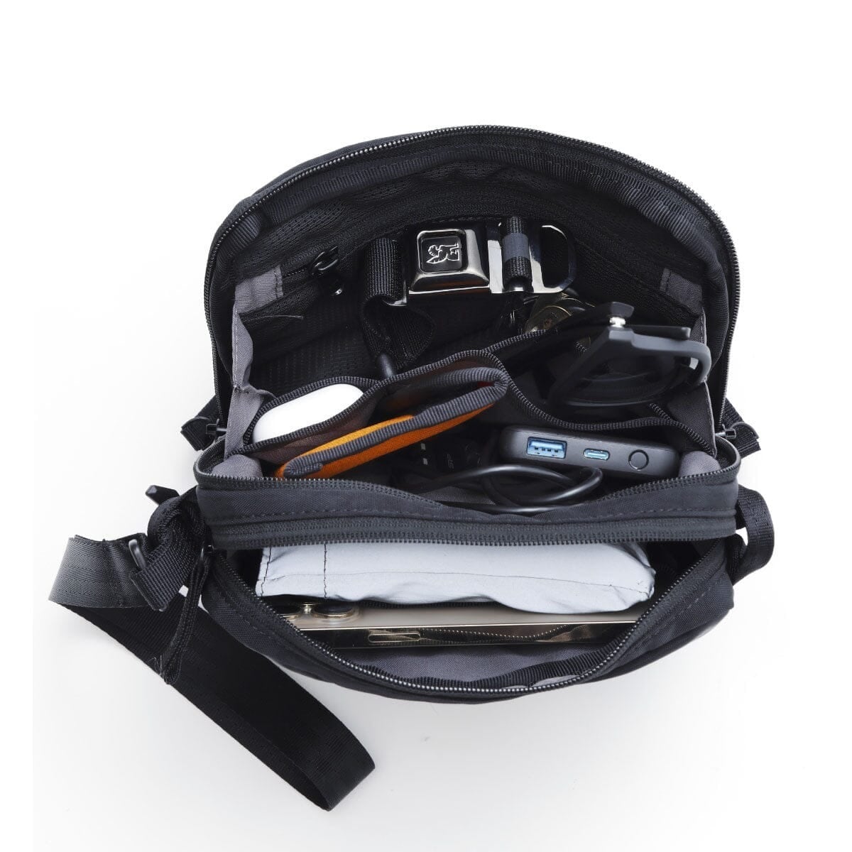 ・大きく開くアコーディオンガセットによりポケットないが小物で溢れていても内部の確認や出し入れがとてもスムーズ。