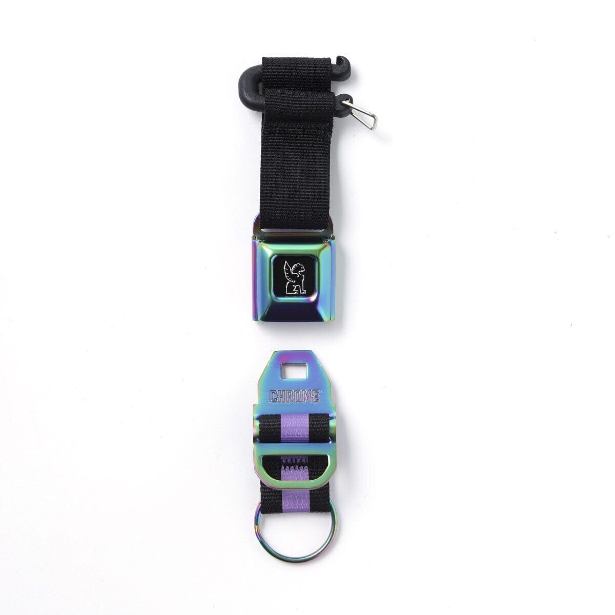 CHROMEオリジナルのアイコニックなシートベルトバックルを小型化したクイックリリースのキーチェーン。