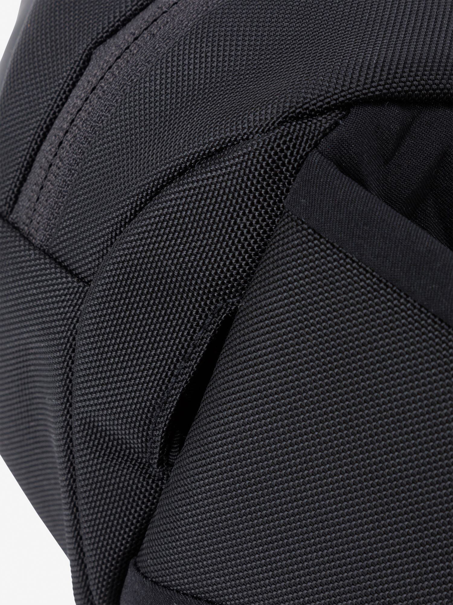 素材は、210デニールのナイロンを張り合わせ、高耐久、高耐水をもたせた生地をメインに使用。補強部は840デニールナイロンを使用し、全体にフォームを封入。耐久性と衝撃吸収性を高めています。